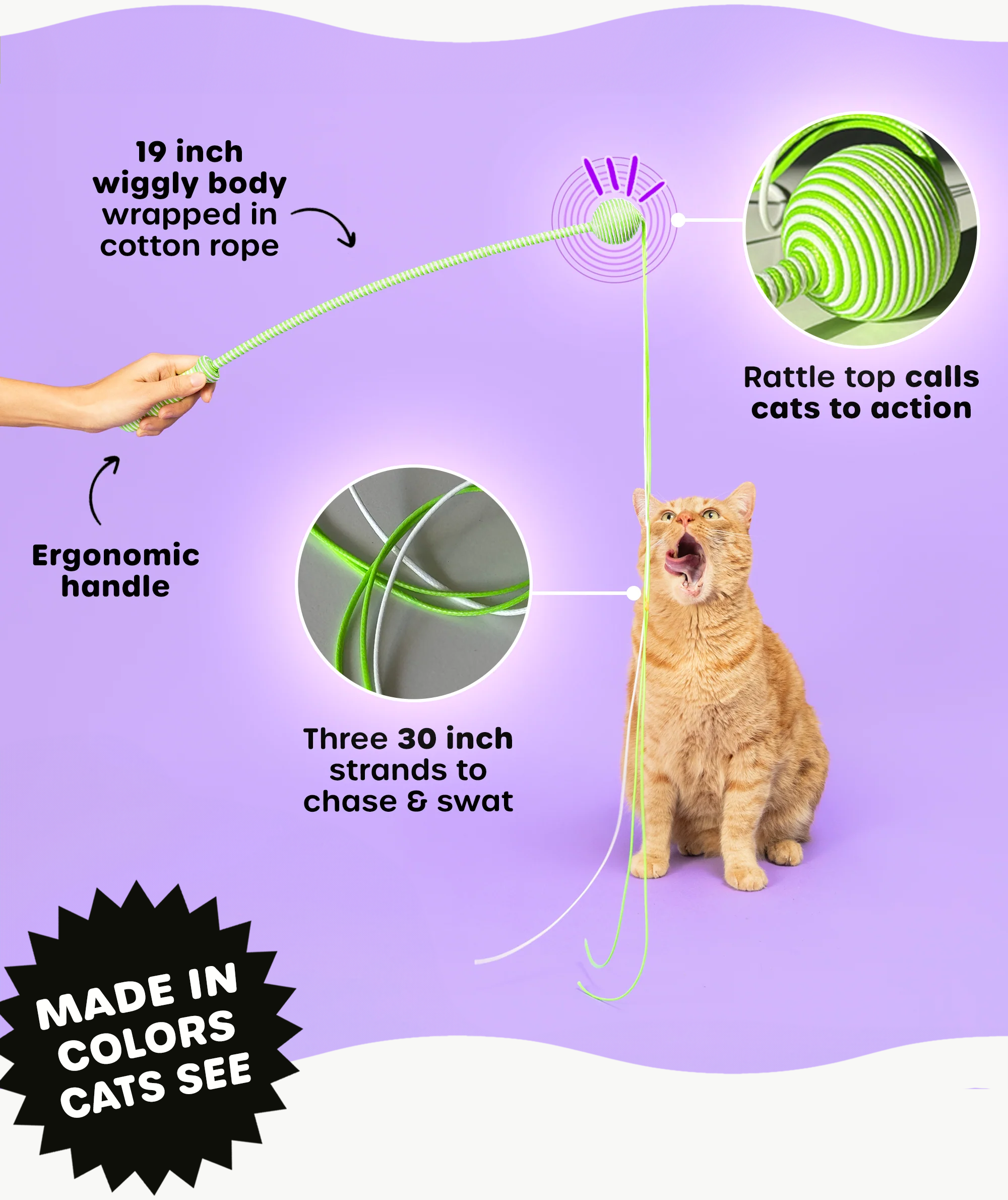 The Wiggle Wand™ is more than just an interactive cat toy; it's designed to provide your cat with endless entertainment and sensory stimulation. Here’s why this is the best wand toy for cats and why it’s loved by both cats and their humans: